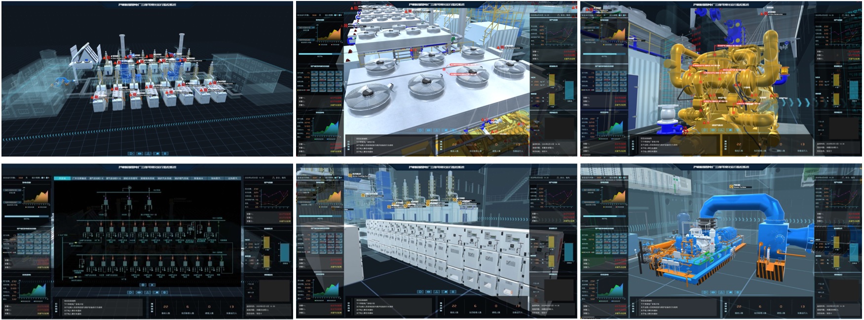 數(shù)字孿生系統(tǒng)為電網(wǎng)、能源行業(yè)提供電力實時監(jiān)視數(shù)據(jù)的動態(tài)直觀呈現(xiàn)、核心設備的內(nèi)外部結構動態(tài)三維展示以及電網(wǎng)設備的互動模擬。并對系統(tǒng)運行狀態(tài)進行實時監(jiān)視,同時對系統(tǒng)性能指標進行同步刷新,采用圖形化表達方式對主要數(shù)據(jù)進行展現(xiàn),實現(xiàn)數(shù)據(jù)信息的遠程直觀動態(tài)呈現(xiàn)及系統(tǒng)間的信息互動,形成一個信息共享的展示平臺,體現(xiàn)三維可視化監(jiān)視區(qū)域內(nèi)的各個系統(tǒng)之間的關系,充分滿足系統(tǒng)遠端監(jiān)控與智能運維的可視化需求。采用三維虛擬仿真技術、虛擬互動技術、三維建模技術、實時數(shù)據(jù)采集技術、可組態(tài)圖表技術等,基于大屏幕互動顯示技術,對電網(wǎng)內(nèi)的多種能源形式、電網(wǎng)設備等進行詳細業(yè)務分析,并將新技術、新設備的優(yōu)異性能數(shù)據(jù)等在三維可視化系統(tǒng)中突出展現(xiàn)。全方位展示能源、電網(wǎng)、負荷之間的關系。系統(tǒng)的三維場景和操作界面設計以絕佳視覺展現(xiàn)效果為目標,依托大屏幕顯示技術,身臨其境的三維可視化展示與智能巡視等操作體驗。